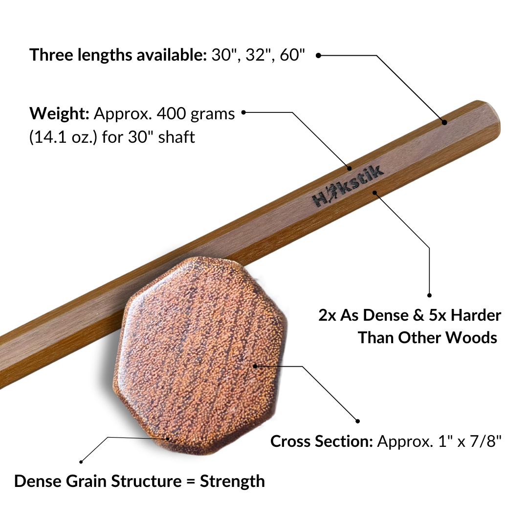 Iron Wood is our nickname for Ipe, also known as Brazilian Walnut. This wood is renowned for its weight and strength, making it perfect for face-off professionals. Comparatively, this shaft is heavier, which allows for more powerful strikes. A 30” attack shaft weighs approximately 400 grams (14.1 ounces).