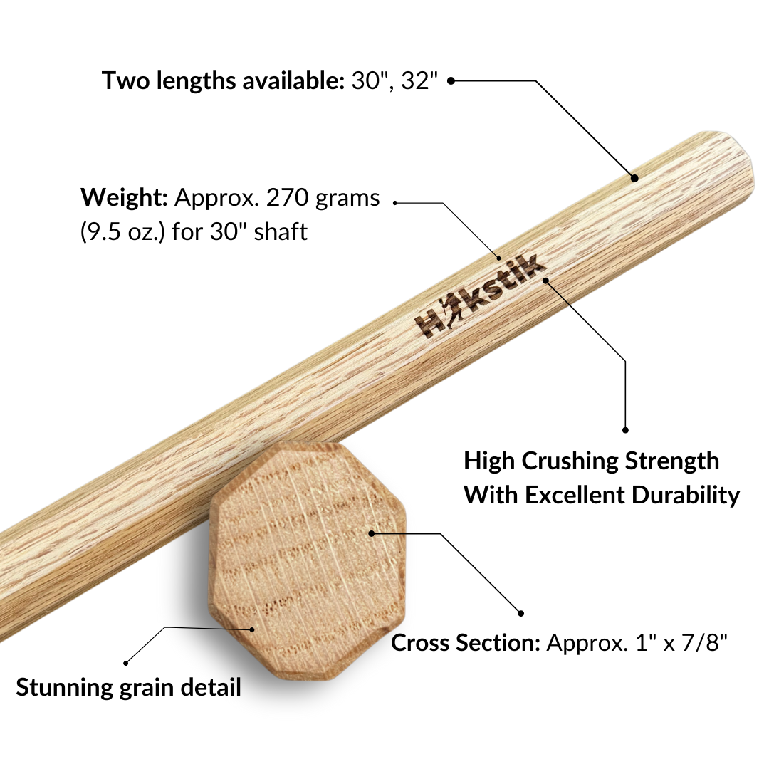 Our Red Oak shafts are perfect for those who appreciate a lightweight option paired with stunning wood grain. Weighing approximately 270 grams (9.5 ounces) for a 30” attack shaft, these shafts deliver exceptional performance.